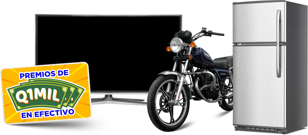 Participa en la rifa de varios premios semanales de Q1000.00 en efectivo, motos, refrigeradoras y/o televisiones.